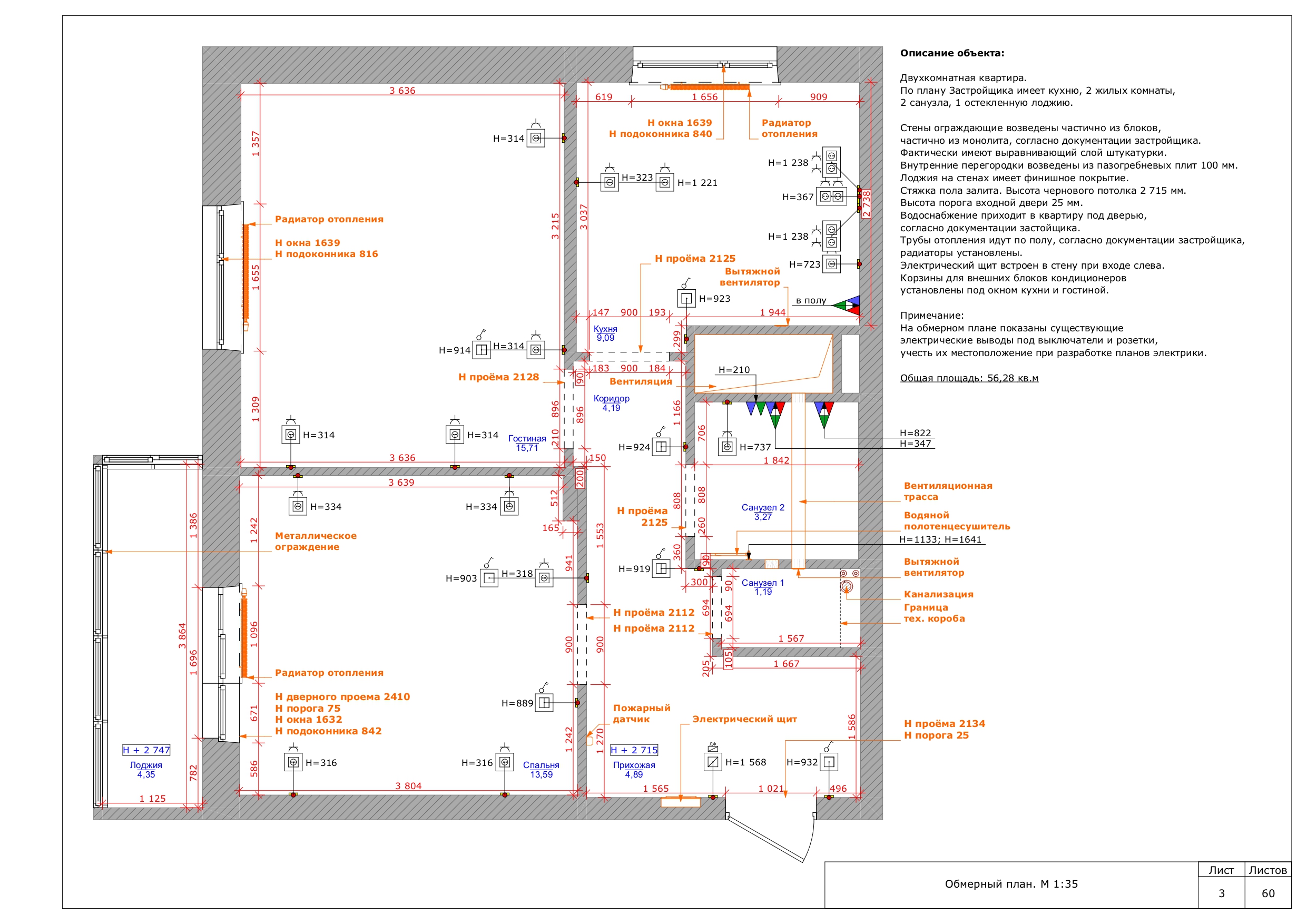 Продам двухкомнатную квартиру 56.3 м.кв.